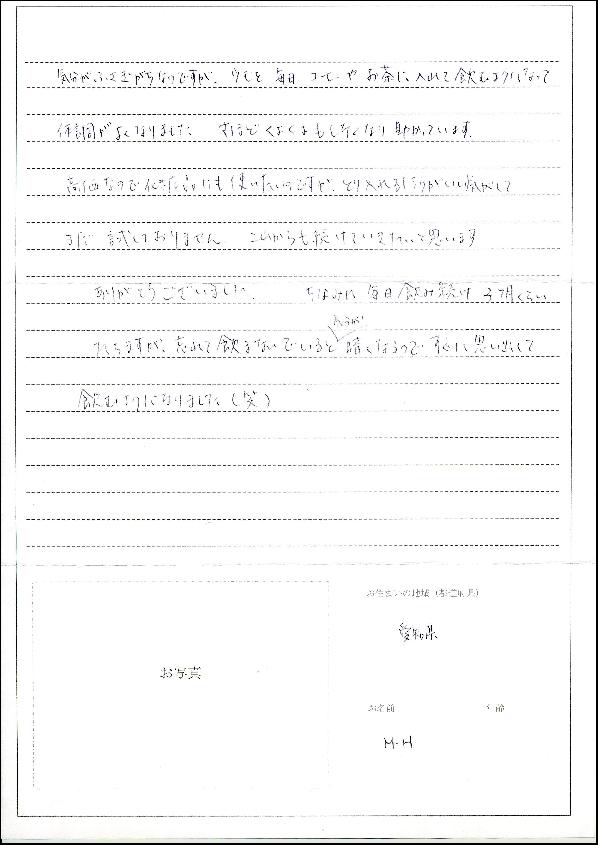 気分がふさぎがちですが、クリスタルを毎日コーヒーやお茶に入れて飲むようになって、体調がよくなりました。さほどくよくよもしなくなり助かっています。化粧品にも使いたいのですが、取り入れるほうがいい気がして、まだ試していません。これからも続けていきたいと思います。